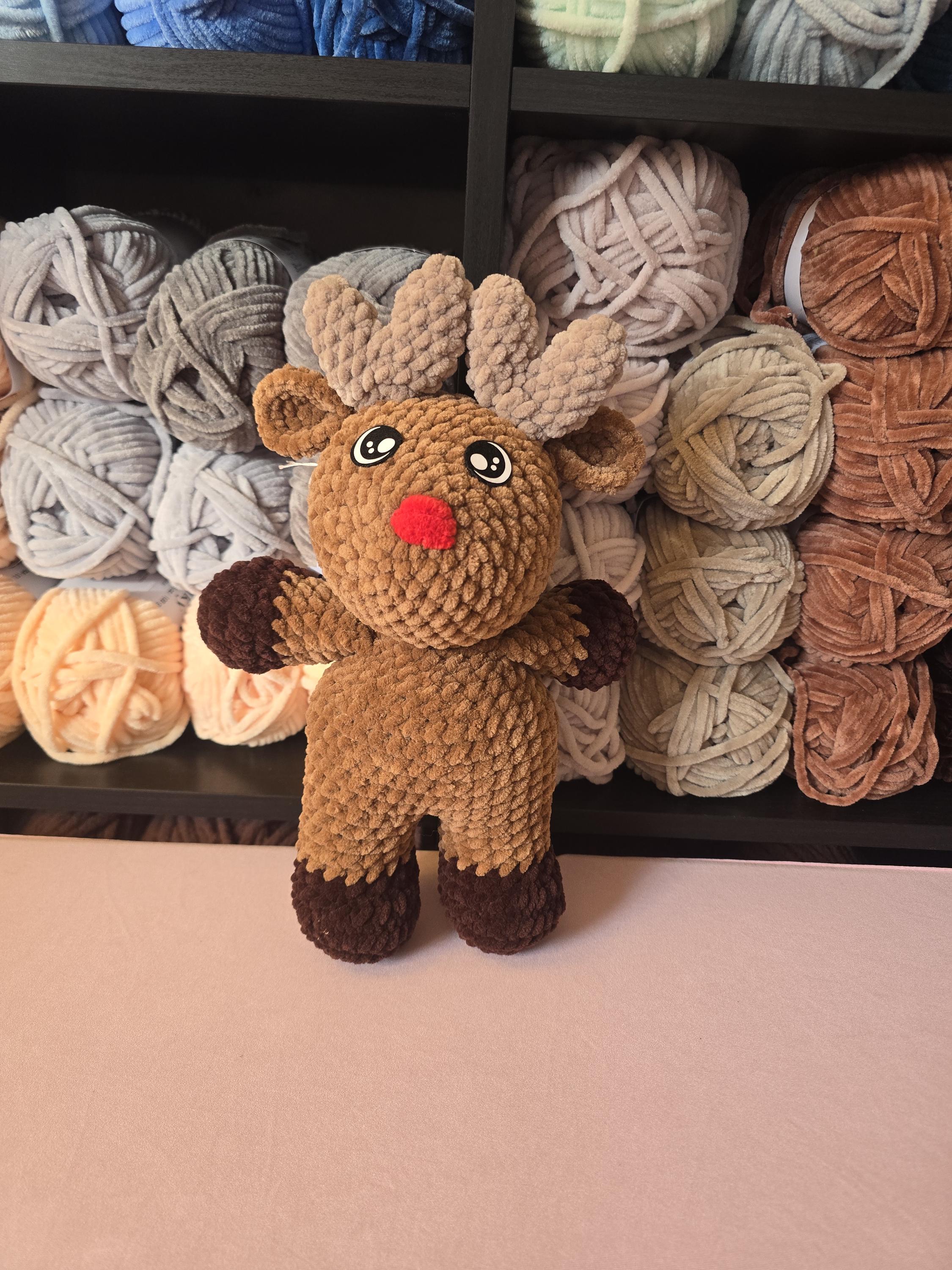 Crochet Reindeer Plush, Chunky Yarn Stuffed Animal, Christmas Gift